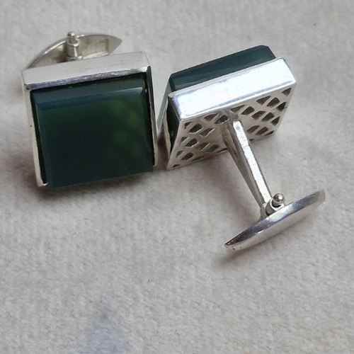 دکمه سر آستین مردانه نقره با سنگ عقیق طبیعی و معدنی اصل