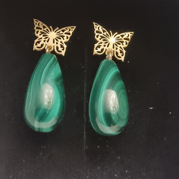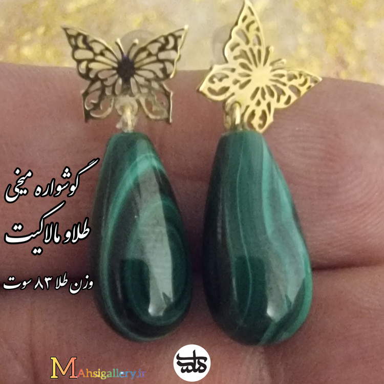همنشینی رنگ سبز مالاکیت و طلا جلوه زیبایی به گوشواره میده