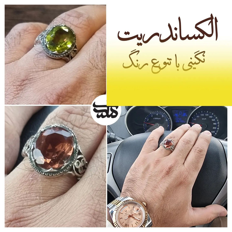 امروز یک جواهری را به شما معرفی میکنم که توی هر نوری یک رنگ میشه اصلا جلوه خاصی که ترکیب رنگ و تونالیته رنگ ایجاد میکنه بسیار جذابه و برای اونهایی که میخواهند خاص باشند و متفاوت انتخاب خوبی است الکساندریت اسم این نگین جواهری است جلوی رنگی آن از رنگ قهوه ای روشن و دودی قهوه ای به سبز بازی داره یک انگشتر با انواع تونالیته رنگی با استفاده کردن از این نگین جواهری زیبا چند انگشتر را همزمان در دستان خود احساس خواهید کرد #جواهر#انگشتر_الکساندریت